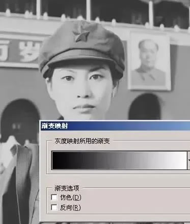 执行“图层>新建调整图层>渐变映射”,选择“黑色-白色”的渐变。(这个步骤就是要去掉颜色)